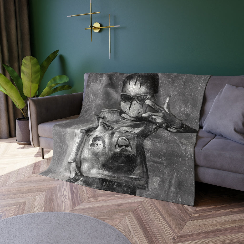 Super soft, super comfy—this crushed velvet blanket with an original custom design will be the perfect addition to the living room couch. It's made from high-quality, durable 100% polyester fabric with zig-zag stitches on its edges.