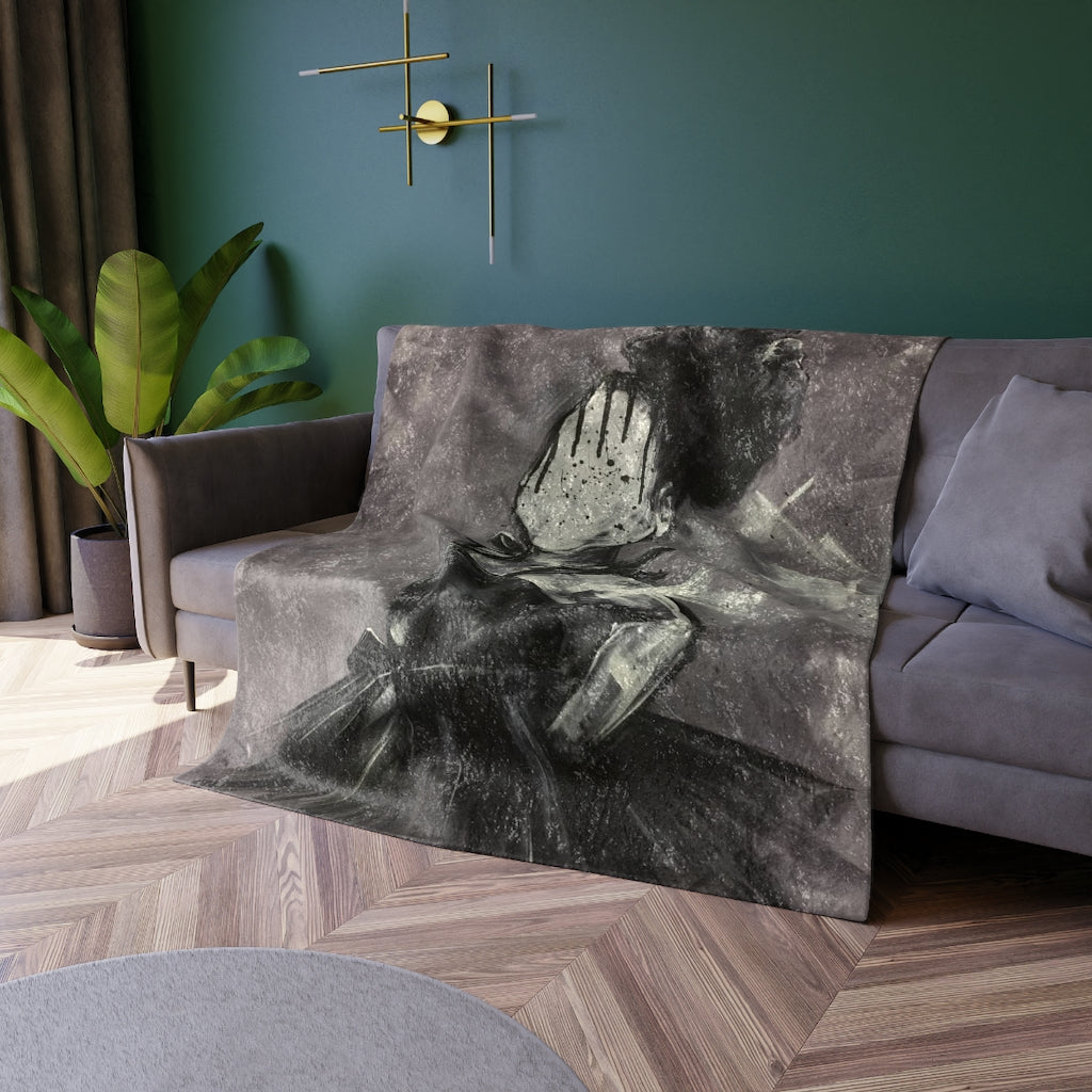 Super soft, super comfy—this crushed velvet blanket with an original custom design will be the perfect addition to the living room couch. It's made from high-quality, durable 100% polyester fabric with zig-zag stitches on its edges.