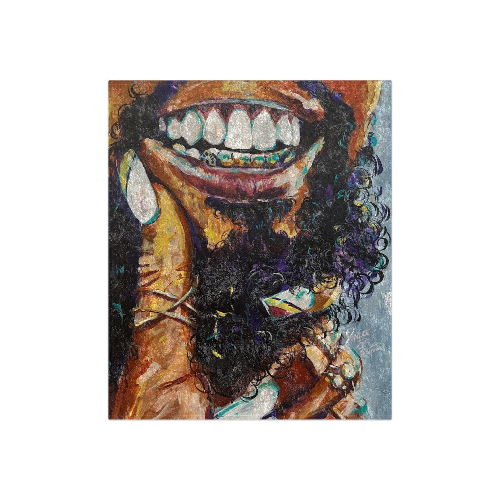 Super soft, super comfy—this crushed velvet blanket with an original custom design will be the perfect addition to the living room couch. It's made from high-quality, durable 100% polyester fabric with zig-zag stitches on its edges.