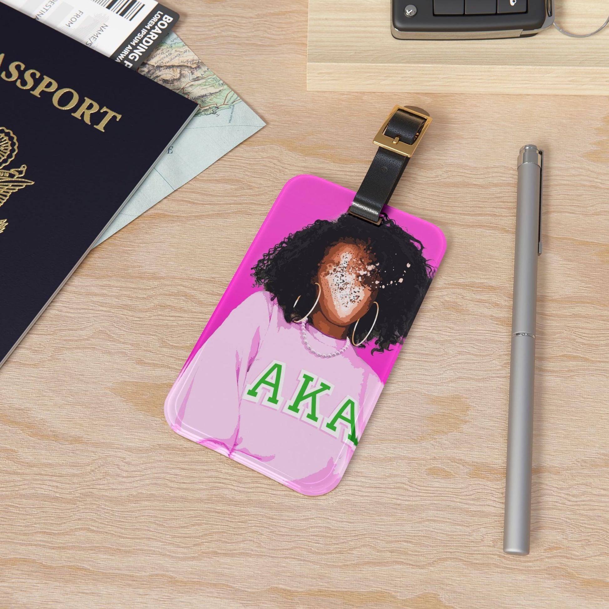 Our acrylic luggage tags come with a business card insert on the back where people can enter their contact information. They're super lightweight, so that they won't add any weight to baggage allowance. Each tag comes with a durable leather strap.