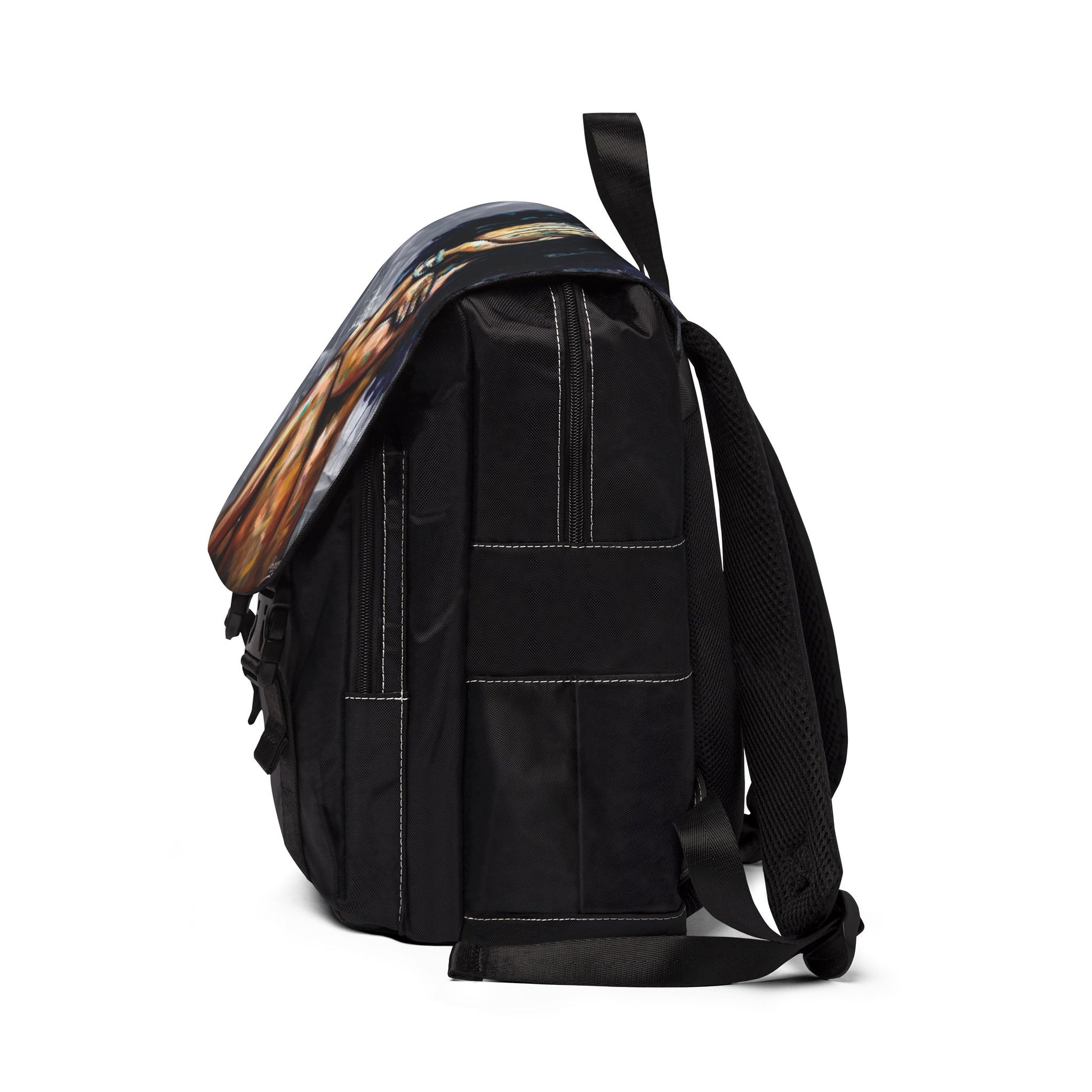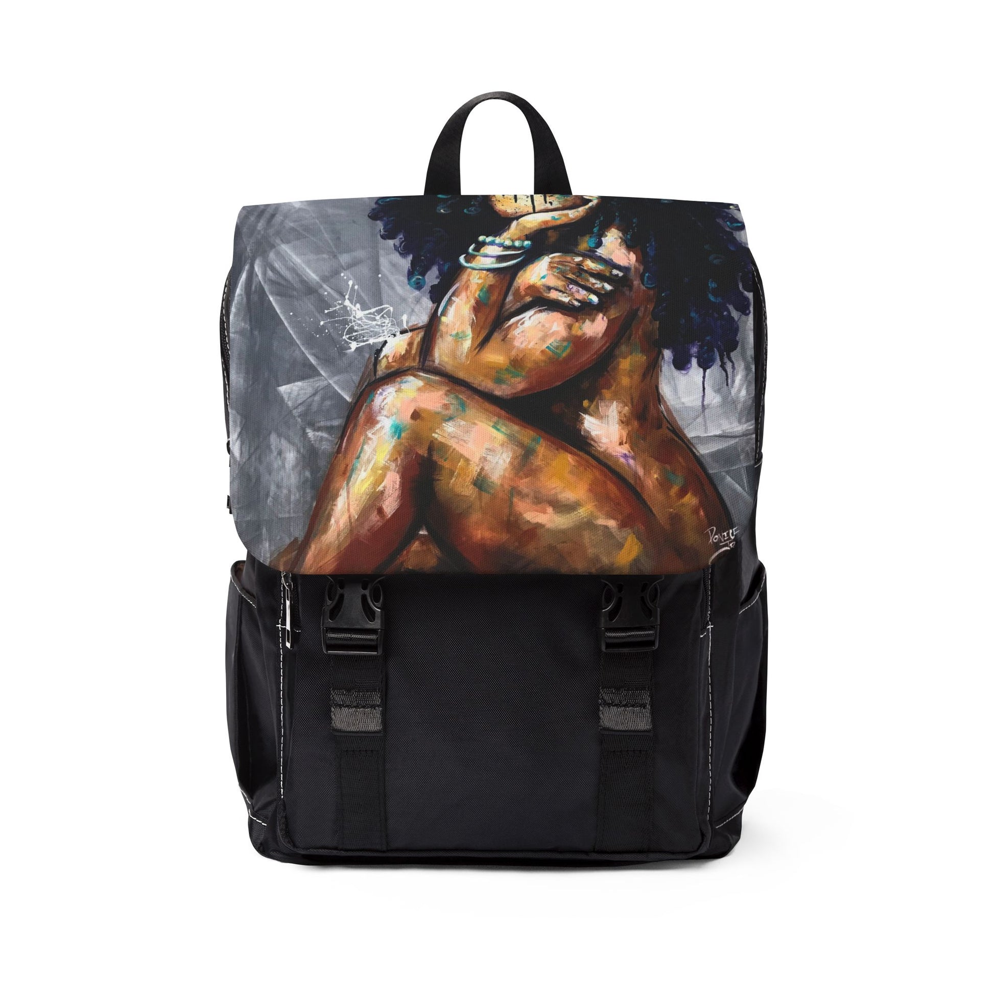 Casual backpack in a classic shape with a flap front design. It is made of a durable oxford fabric. It has two slip interior pockets and one laptop sleeve in the main compartment, a front zipper pocket, two side pockets.