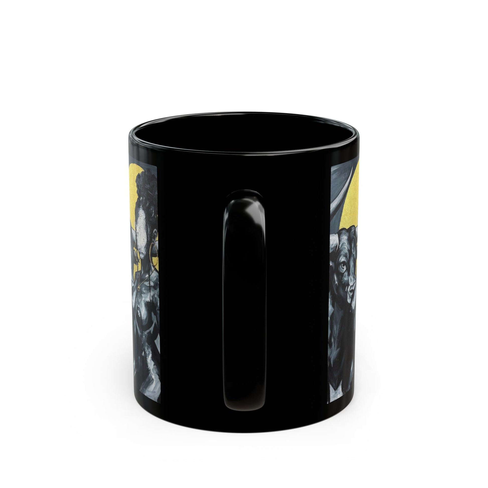 This black ceramic mug carries a bold, art-forward scene that brings a moody, painterly energy to your morning ritual. The glossy black surface makes the illustrated figures and glowing golden halo stand out with rich contrast, giving every sip a cinematic moment. It’s heavyweight in feel yet comfortable to hold thanks to the C-shaped handle, and it fits naturally into a creative studio, late-night writing session, or quiet cup beside an altar of objets d’art. Durable printing keeps colors vivid over time, and the microwave- and dishwasher-safe finish means the focus stays on the atmosphere, not the upkeep.