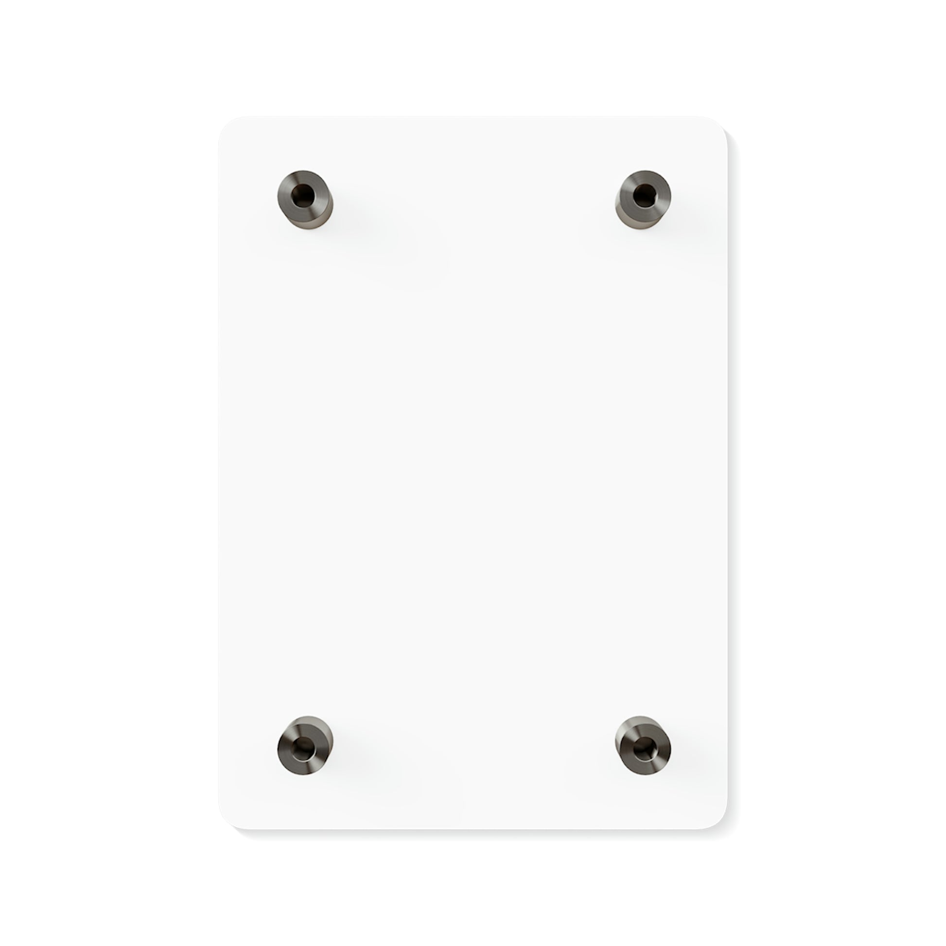 Acrylic art panels are a modern way to display beautiful and vibrant art that looks like it's embedded in clear glass. They have a clear, glossy acrylic surface and a white vinyl backing. Four silver stand-offs make it very easy to mount to the wall. Make your own original designs and print them on any (or all) of the seven available panel sizes in horizontal and vertical orientations. Square dimensions are available.
