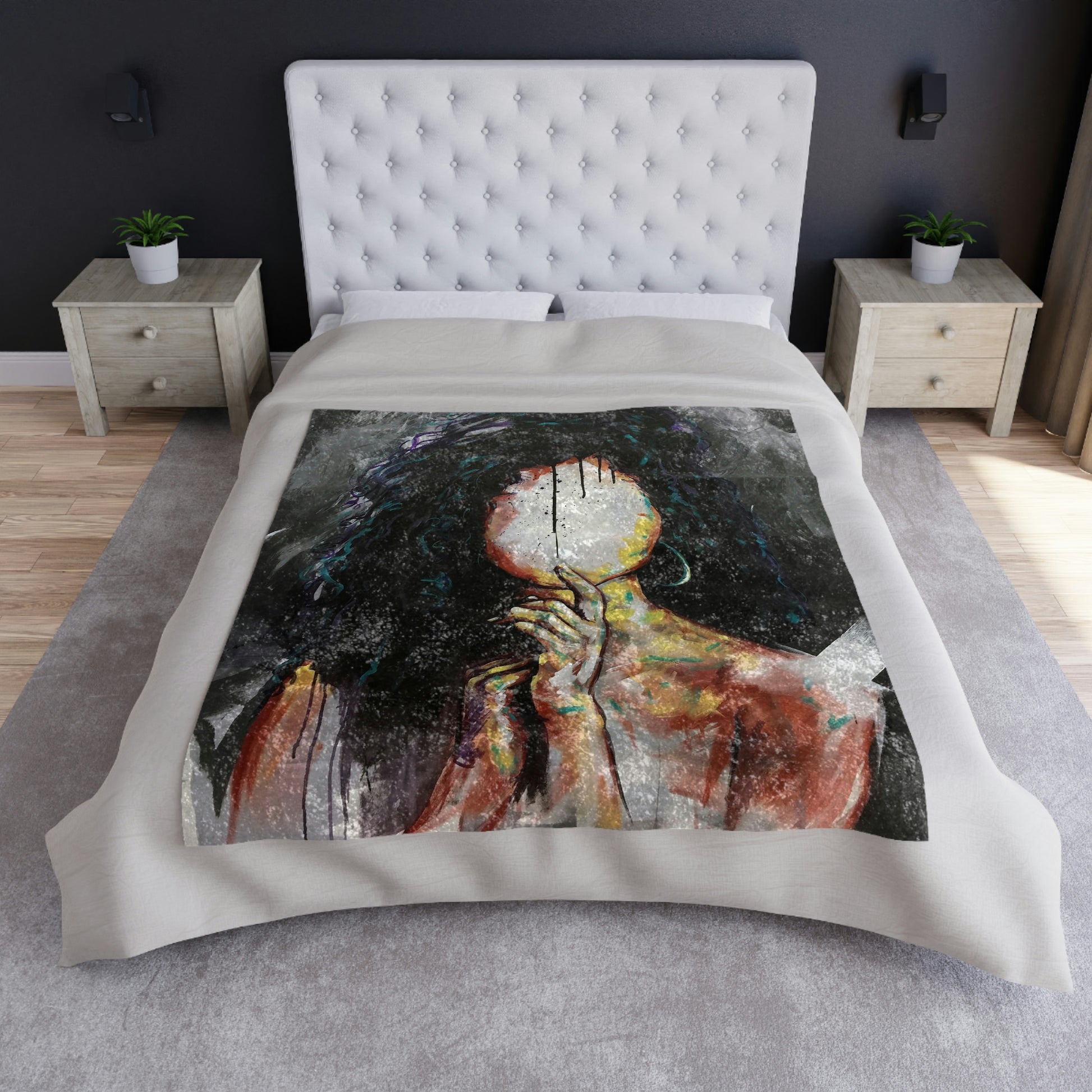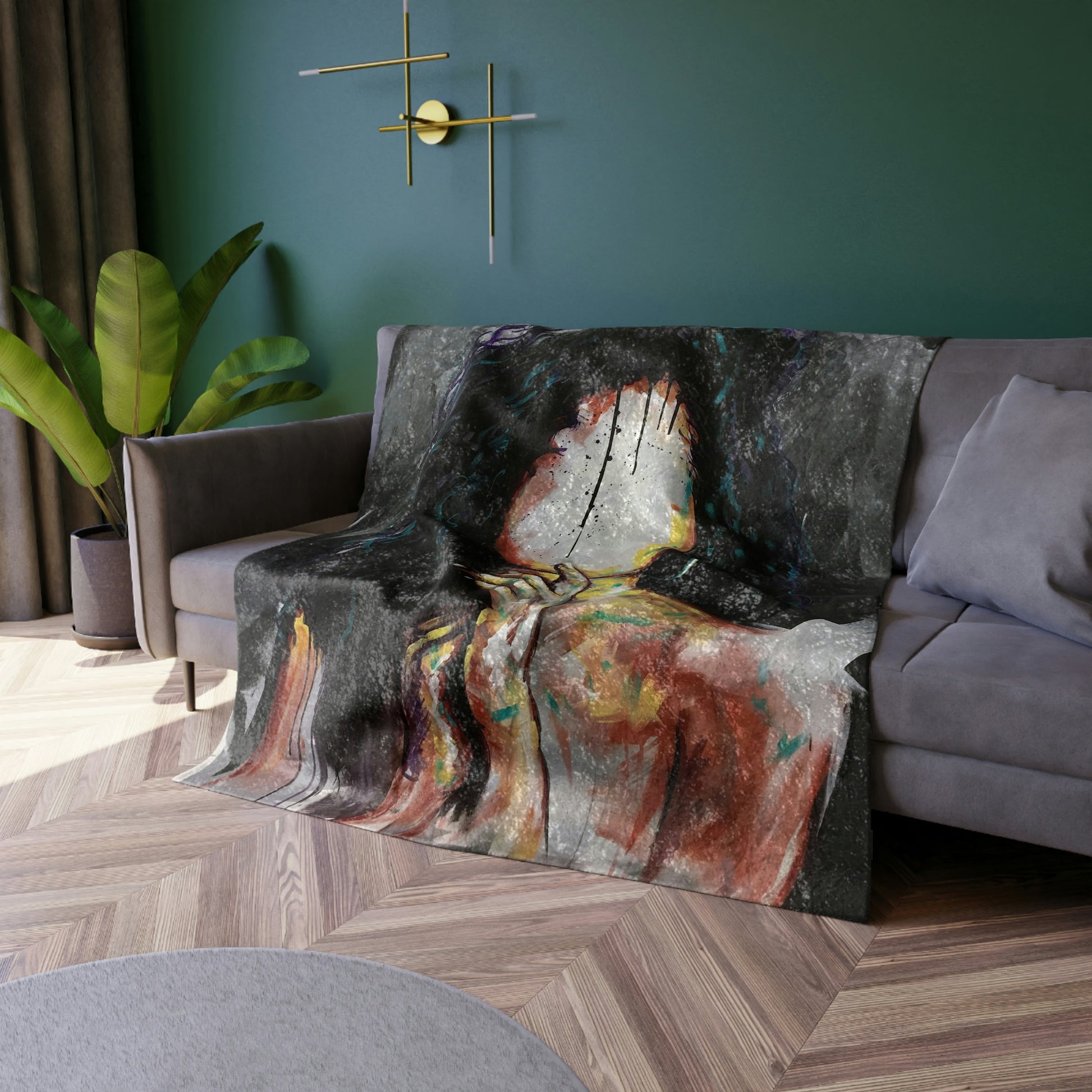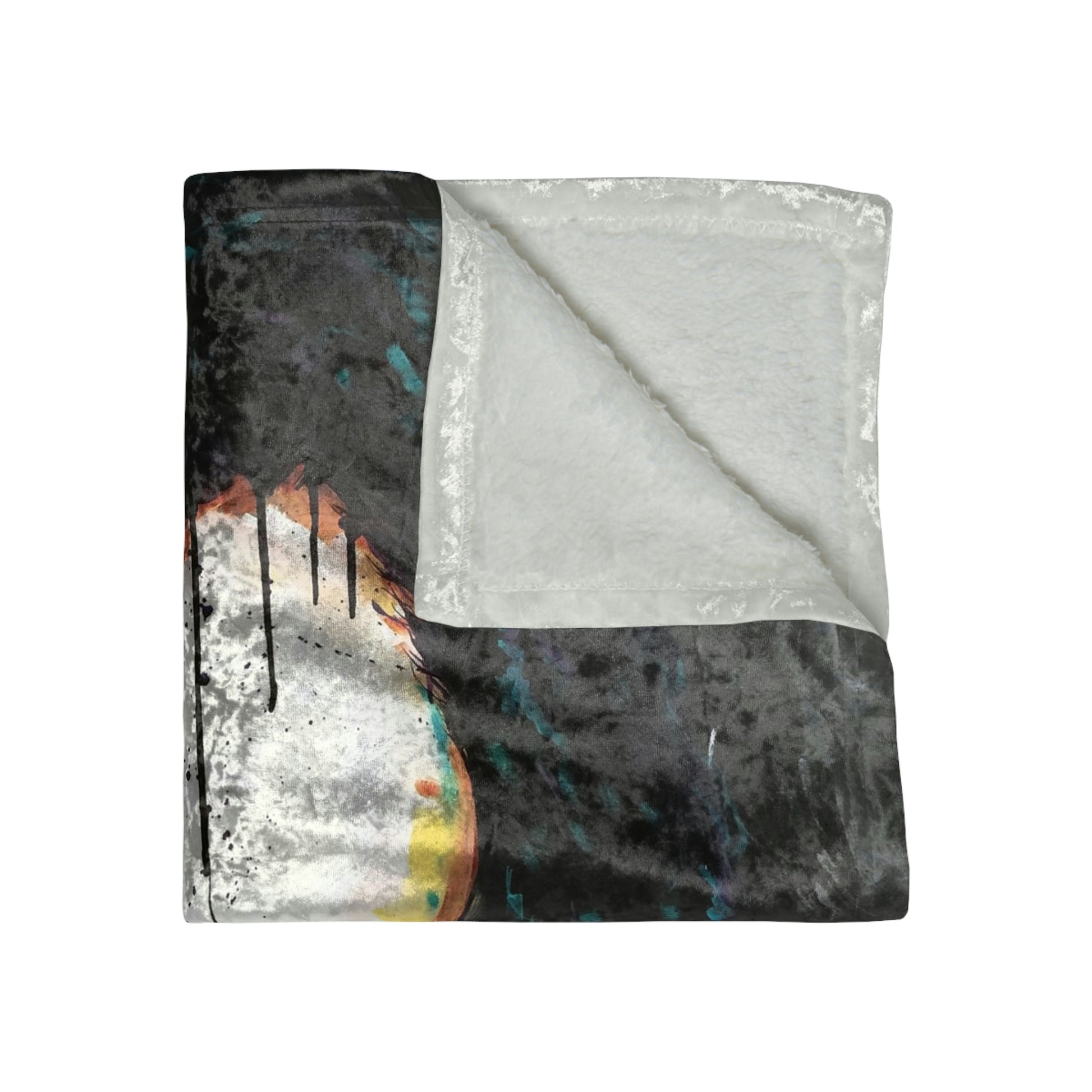 Super soft, super comfy—this crushed velvet blanket with an original custom design will be the perfect addition to the living room couch. It's made from high-quality, durable 100% polyester fabric with zig-zag stitches on its edges.